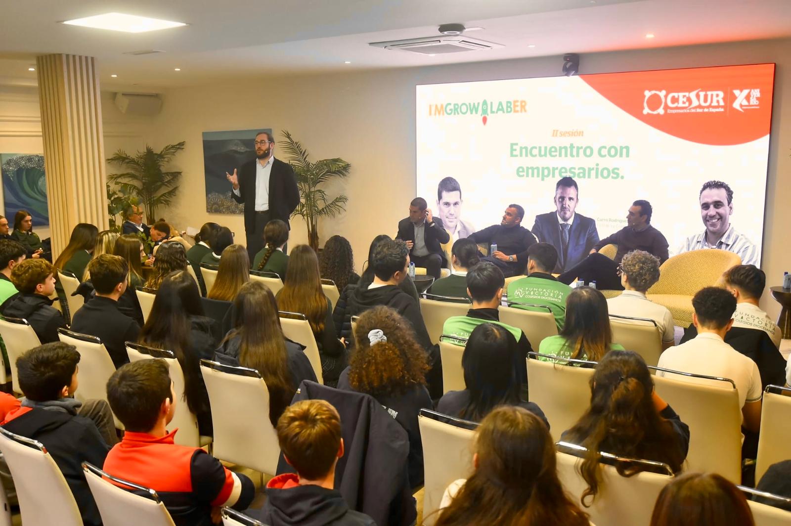 Más de 200 alumnos de 4º de ESO, Bachillerato y Formación Profesional de centros públicos, privados y concertados de Andalucía Oriental han participado en Málaga la segunda sesión de la IX edición de nuestro programa-concurso de emprendimiento escolar, I’m Growlaber. Bajo el título “Encuentro con empresarios”, la jornada ha tenido lugar el jueves 15 de enero en el Uppery Club de Málaga.