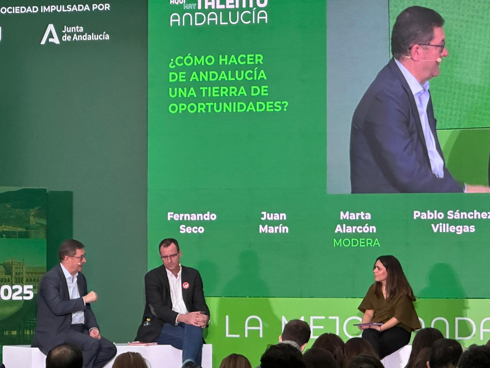 Nuestro vicepresidente ejecutivo, Fernando Seco, ha sido uno de los ponentes participantes en el Bloque II, dedicado a responder a la pregunta: "¿Cómo hacemos de Andalucía el mejor lugar para el talento?". En concreto, Fernando Seco ha intervenido en la mesa redonda "¿Cómo hacer de Andalucía una tierra de oportunidades?", junto a Juan Marín, presidente del Consejo Económico y Social de Andalucía; Rafael Amor, presidente de la Federación Nacional de Trabajadores Autónomos (ATA); Pablo Sánchez Villegas, secretario de Salud Laboral, Sectores Emergentes y Memoria Histórica y Democrática de UGT, y Trinidad Gallardo Pérez, secretaria de Empleo de CCOO Andalucía.
