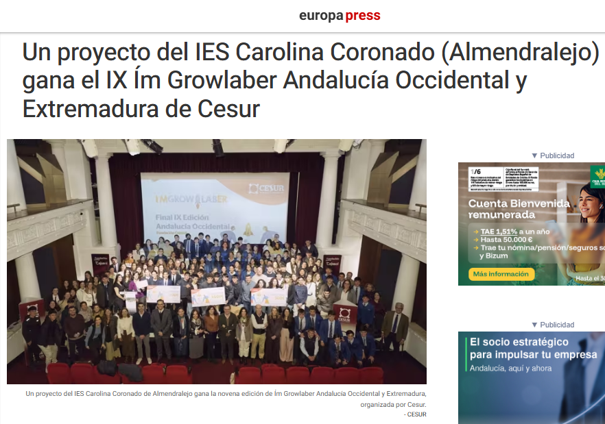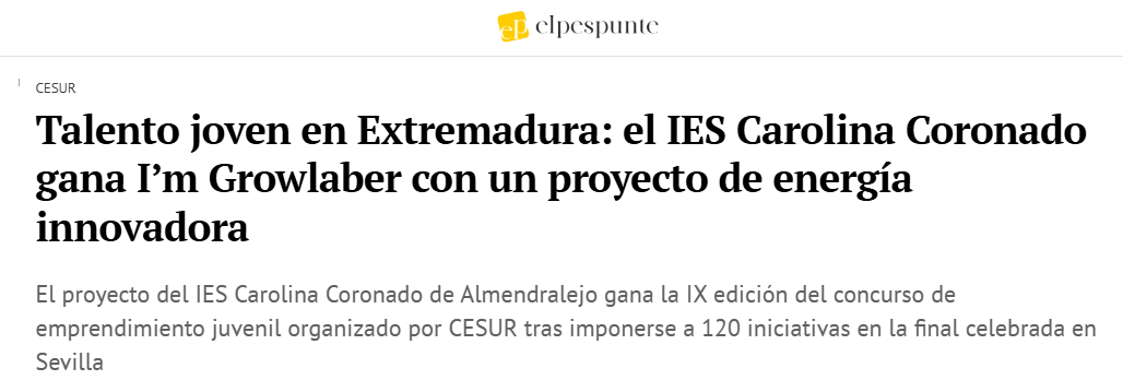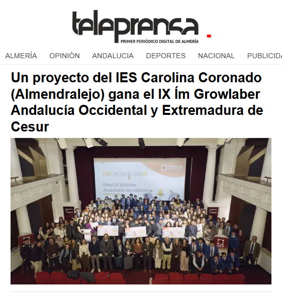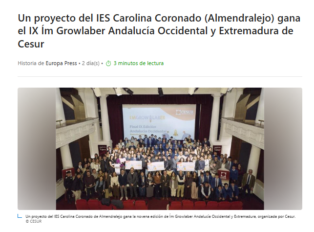 Un proyecto del IES Carolina Coronado (Almendralejo) gana el IX Ím Growlaber Andalucía Occidental y Extremadura de Cesur