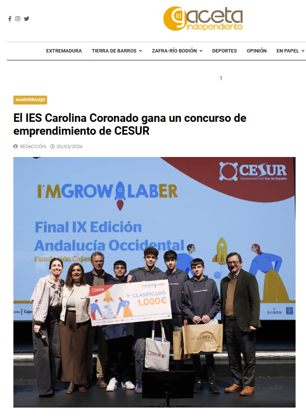 El IES Carolina Coronado gana un concurso de emprendimiento de CESUR