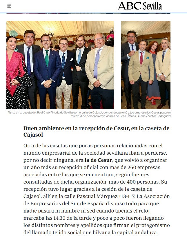 Repercusión: Recepción oficial de CESUR en la Feria de Abril de Sevilla